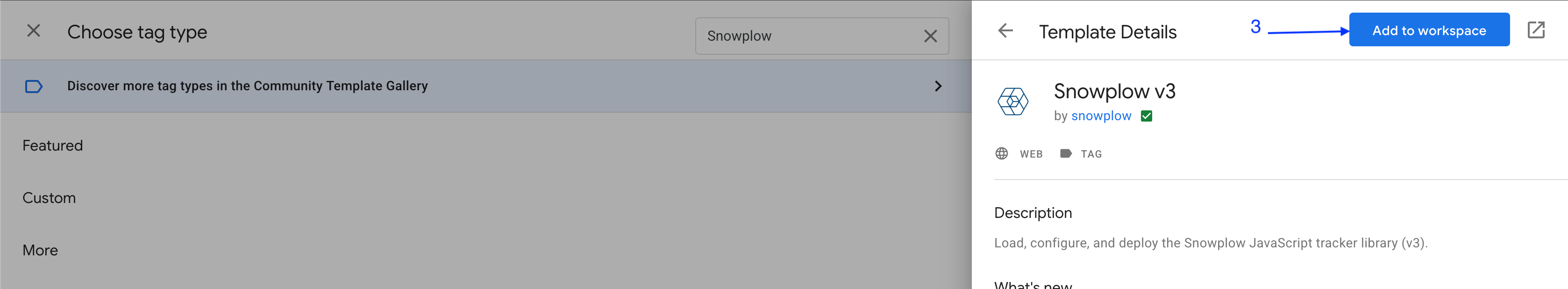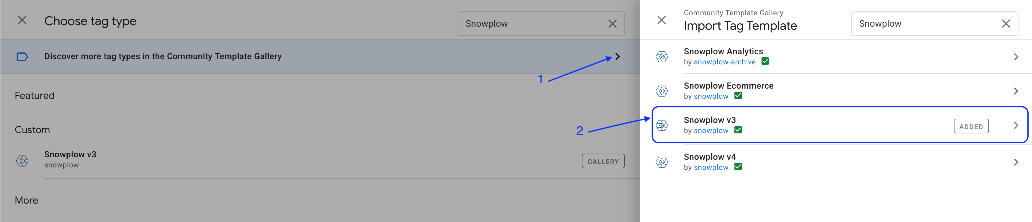 - Click on the Discover more tag types in the Community Template Gallery banner at the top of the side panel. (1)
