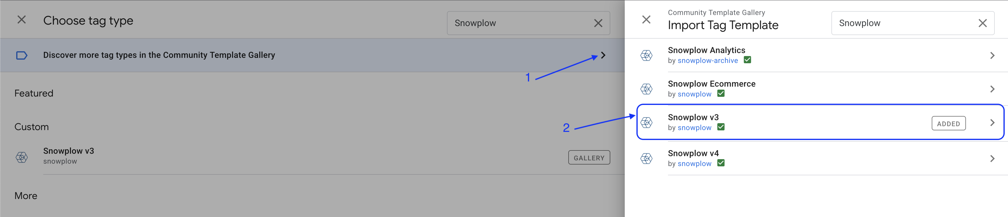 - Click on the Discover more tag types in the Community Template Gallery banner at the top of the side panel. (1)