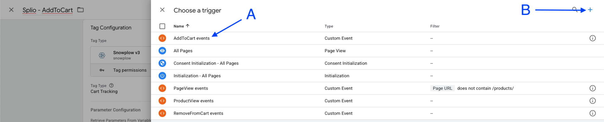 You can either use an existing trigger (A) , if one has already been created, or create a new one (B)