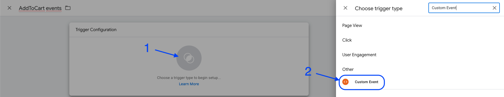 Trigger Configurationsection, select theCustom Eventtype