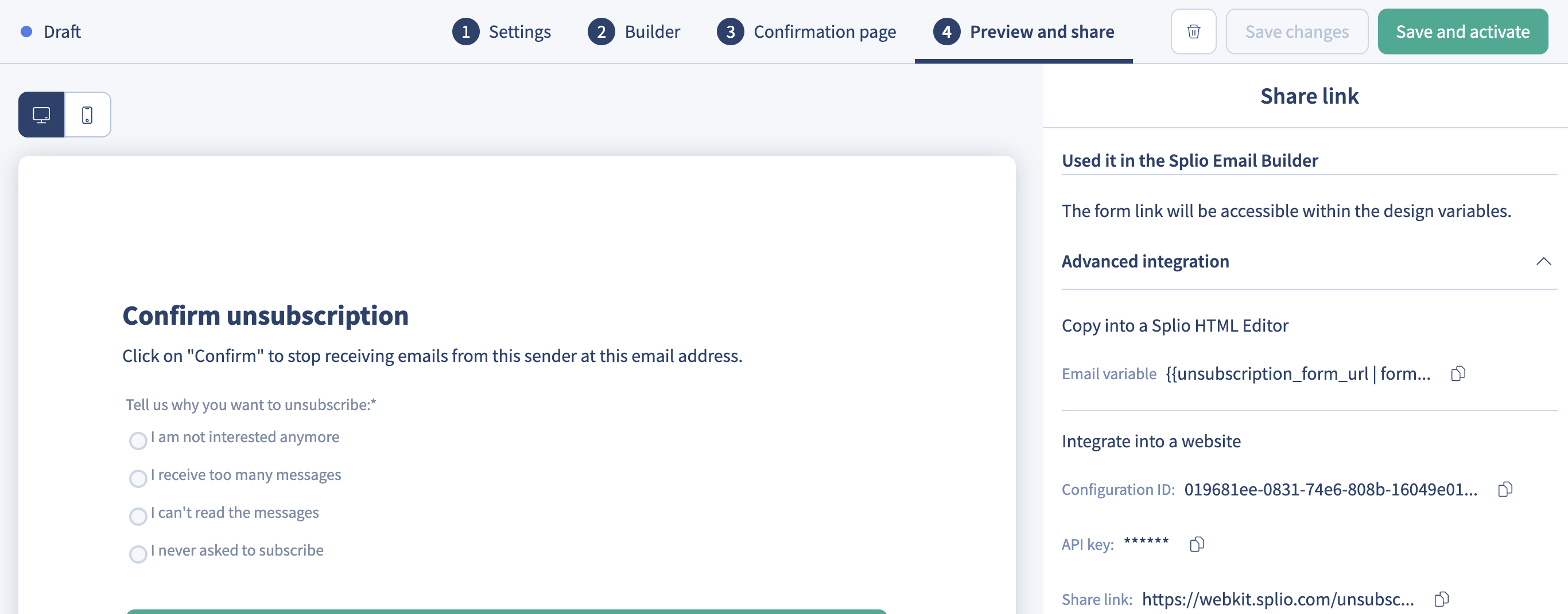 unsubscription_form | Embed a form to unsubscribe a contact |